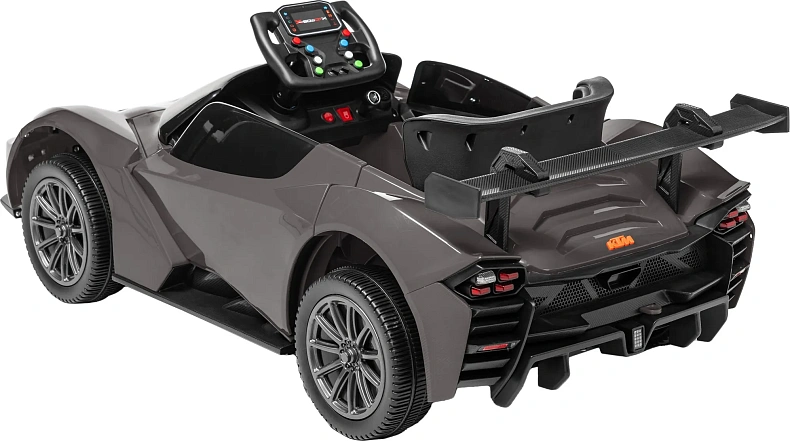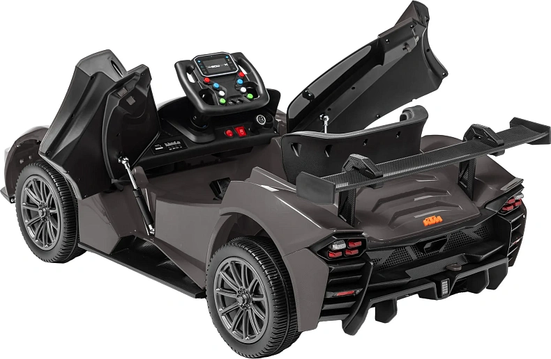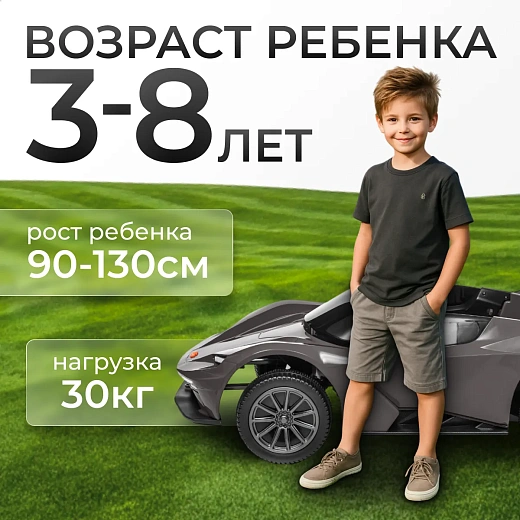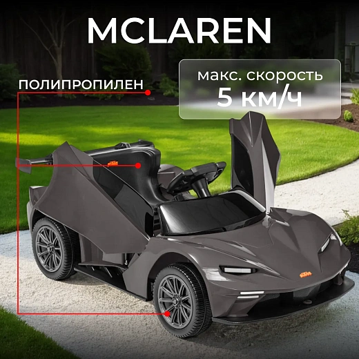 Детский автомобиль в стиле McLaren создан для возраста 3–8 лет и роста 90–130 см. Максимальная нагрузка — 30 кг. Серо-черная гамма передает стильный и современный образ.
