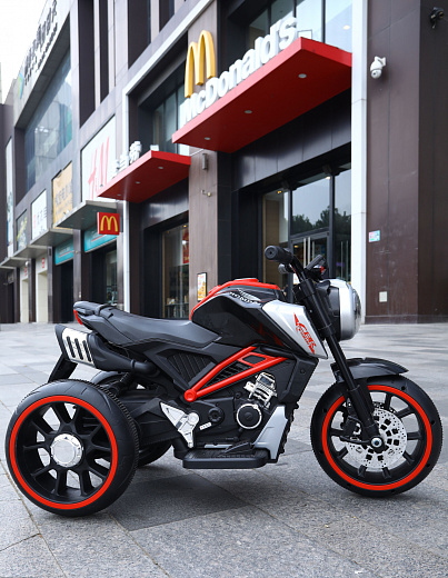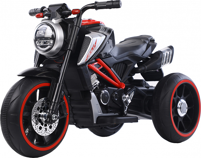 Детский мотоцикл создан для активного досуга и развития детей возрастом 3–6 лет и ростом 90–120 см. Максимальный вес юного водителя — 25 кг. Черный цвет кузова смотрится сдержанно и универсально.